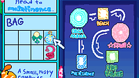 This is the inventory! The stuff on the side is always there. You can flip through notes and the map and other things with the arrows on top. Areas are: Orca Arena, Beach, Stage, Reef Palace, and Main...
